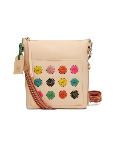 Our new, vertical crossbody has an extra front slip pocket and a side zip pocket to streamline your busy life in style. Zip it up and go! Hand-lac...