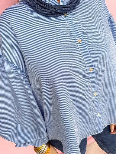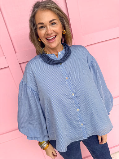 Meet your new statement staple—the Stripe Expectations Top in Blue! This Stripe Expectations Top is a beauty that features playful balloon sleeves ...