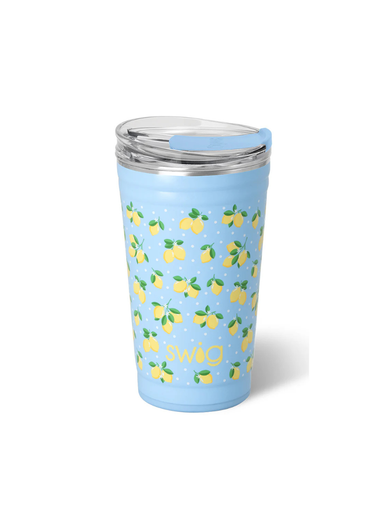 Mega sips, mega chill! 🧊Squeeze the day with these freshly picked lemons and charming polka dots on a glitter sky-blue background. New lid, zero le...