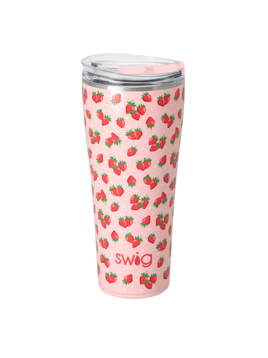 Mega sips, mega chill! 🧊Stay berry sweet all season long with these fresh picked strawberries and charming polka dots on a glitter blush pink backg...