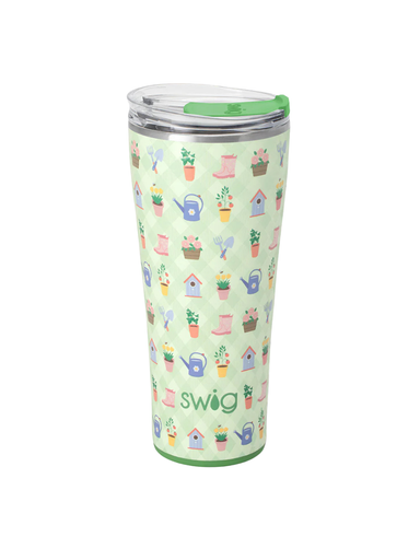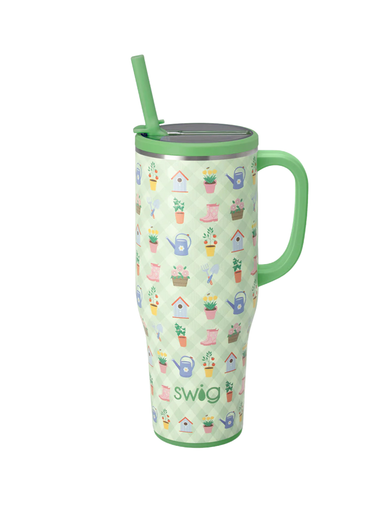 Mega sips, mega chill! 🧊This cheerful garden print grows to life with a patchwork of vibrant blooms, watering cans, and charming garden tools, acro...
