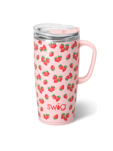 We've got it handled! ☕ Stay berry sweet all season long with these fresh picked strawberries and charming polka dots on a glitter blush pink backg...