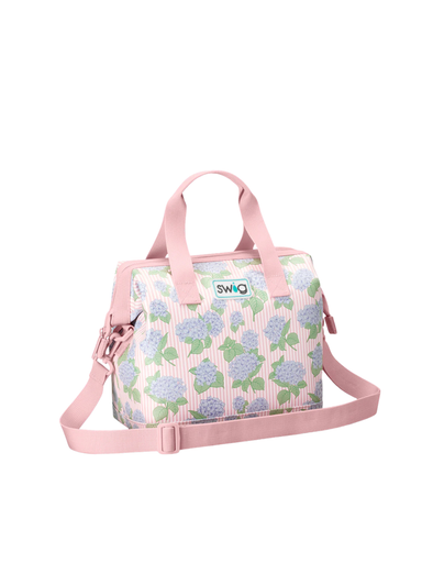 Keep cooler and carry on! 🧊 This print blooms with timeless charm, featuring clusters of soft blue hydrangeas scattered across a delicate blush and...