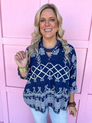 Stay breezy and bold in the Autumn Floral Trellis Top in Mustard! The Autumn Floral Trellis Top in Mustard is a charming navy button-up with a cla...
