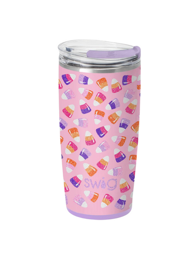 Mega sips, mega chill! 🧊 Bite into something sweet this Halloween with this glitter glow in the dark candy corn on a glitter pink background. You a...