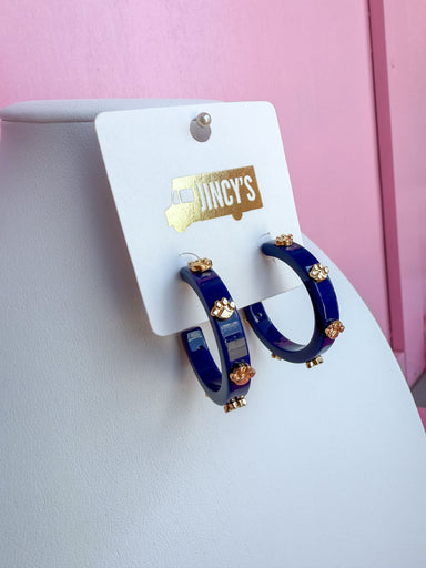 Get ready for game day with this playful Blue Acrylic Paw Hoop 🐾 Our blue acrylic paw hoops feature a bright finish and adorable gold paw print des...