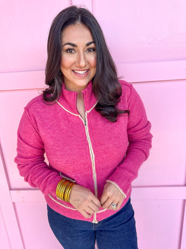 Bundle up in the Button Up Sweater in Hot Pink! Our Button up Sweater in Hot Pink has dramatic, gold hammered buttons to elevate your look! We are ...