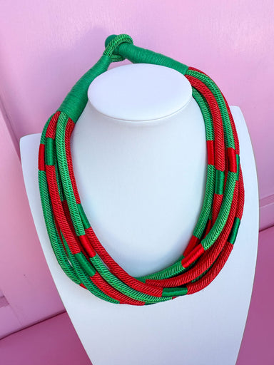 Set the trend and top off your outfit with our Make A Statement Necklace in Red and Green layered, cotton-slub, rope necklace! Our Make A Statemen...