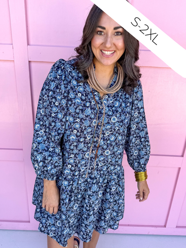 Step into a dreamy escape with the Secret Garden Dress!  This Secret Garden Dress in navy features delicate lighter blue florals that bloom across...