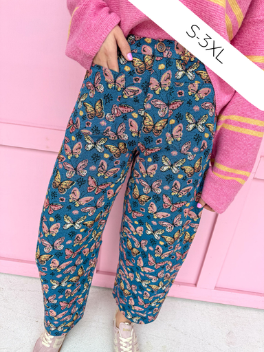 Float through your day in these Butterfly Wishes Barrel Pants—where statement style meets easy comfort. The Butterfly Wishes Barrel Pants are desi...