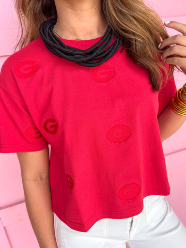 Bring the Dawg Nation® energy in our Ritter Crew Neck! This cozy, oversized Georgia® Red Ritter Crew top is covered in the iconic Georgia “G” logo ...
