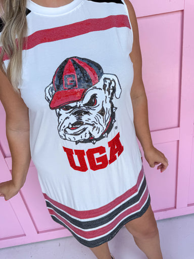 Show your team spirit in style with this Queen of Sparkles Licensed UGA® Striped Tank Dress. Our Queen of Sparkles UGA® Striped Tank Dress is de...