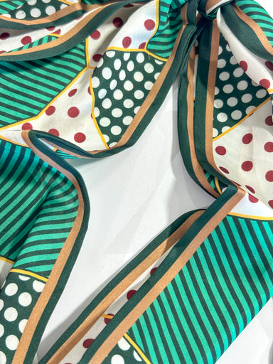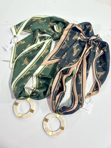 Up your accessory game and top off your outfit with this new pattern silk twilly necklace by Hart Designs with marble pendant! This bold scarf nec...