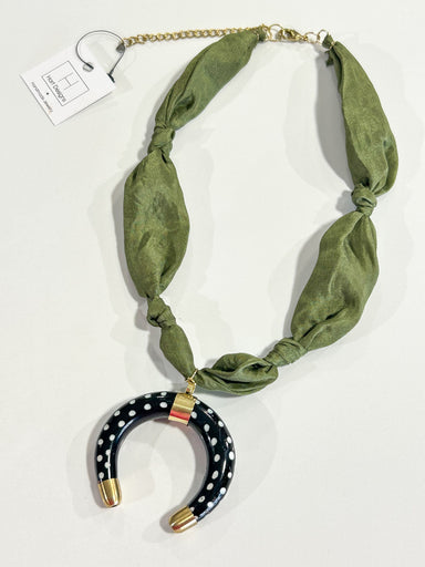 Up your accessory game and top off your outfit with these new solid silk scarf necklaces by Hart Designs with the polka dot horseshoe pendants! Thi...