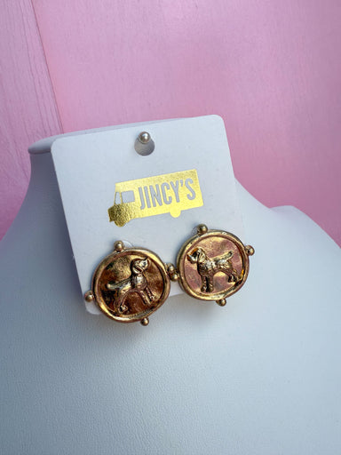 Show your team spirit in style with these vintage gold Hound Dog Coin Earrings! Our Hound Dog Coin Earrings are perfect for game day! Playful and b...