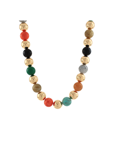 Add a splash of fun and color to your look with this Beaded Charm Necklace! Featuring a lively mix of multi-colored and gold beads, it effortlessly...