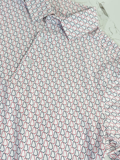 This white polo brings a cool twist to game day style! Featuring a camo pattern filled with red and grey Georgia states, it’s a bold and comfortab...
