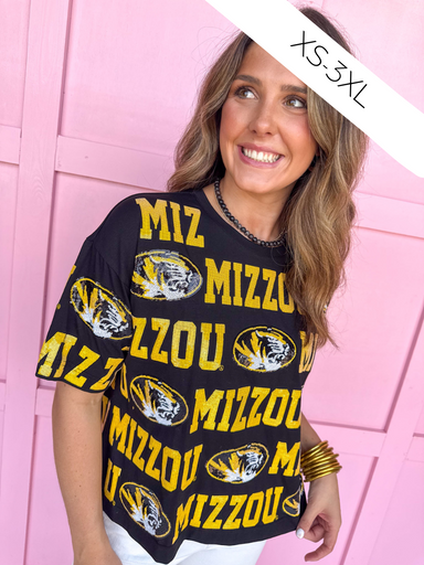 For the Mizzou fan who brings fierce style to football Saturdays, this Stewart Simmons Repeat Tee delivers bold Tiger pride with high fashion flair...