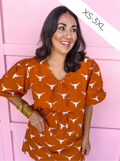 This Stewart Simmons Poplin Puff Sleeve Top is an effortless blend of polish and personality to cheer on the Texas Longhorns! 🧡 🏈 Cut from crisp ...