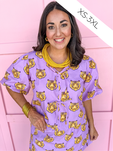 This Stewart Simmons Poplin Puff Sleeve Top is an effortless blend of polish and personality to cheer on the LSU Tigers! 🐅✨💜 Cut from crisp purpl...