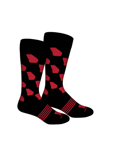 Step up your sock game and show your Georgia pride with these bold black and red crew socks. Featuring a repeating red Georgia state silhouette and...
