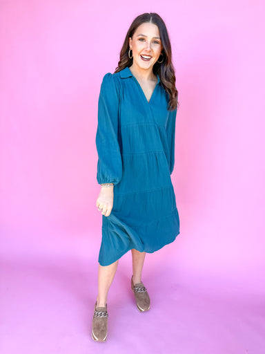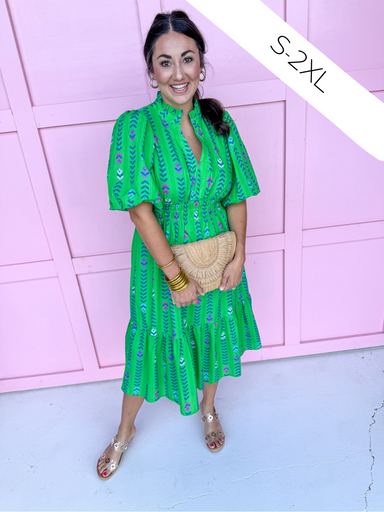 Say hello to our Simply Striped Dress in Green! Our Simply Striped Dress is a timeless classic with a modern twist. Featuring a button front, 3/4 l...