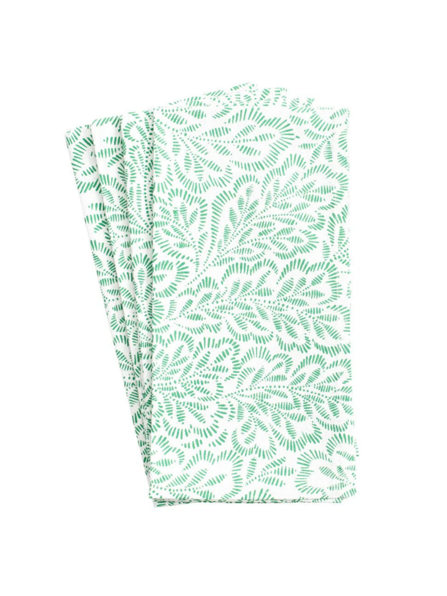 Caspari | Block Print Leaves Cotton Dinner Napkin