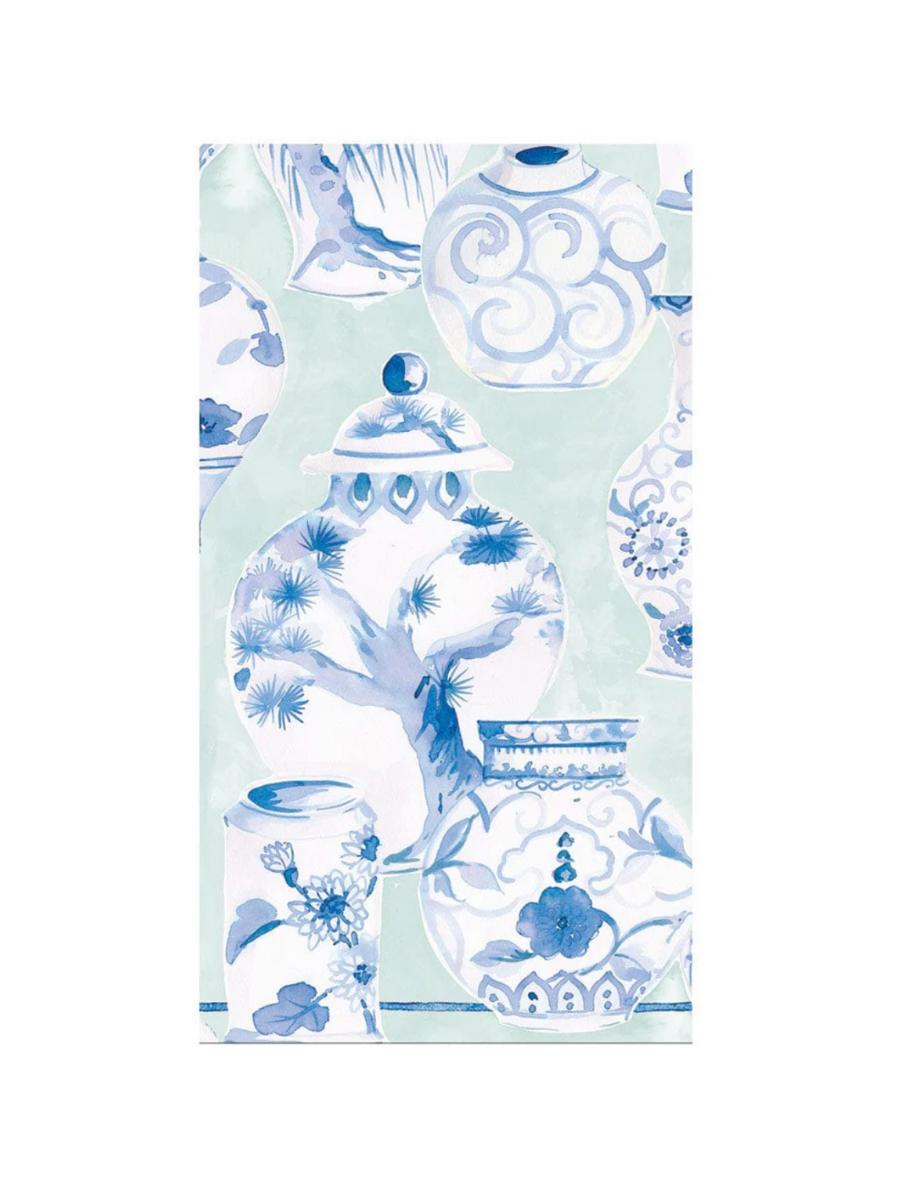 Caspari | Glazed Porcelain Celadon Paper Linen Guest Towel Napkins